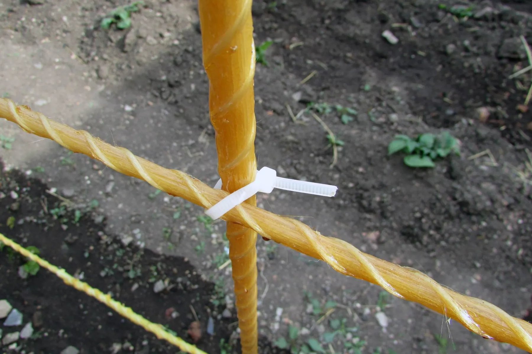 - Стяжка хомутами – самый простой и практичный способ для укладки стеклопластиковой арматуры.