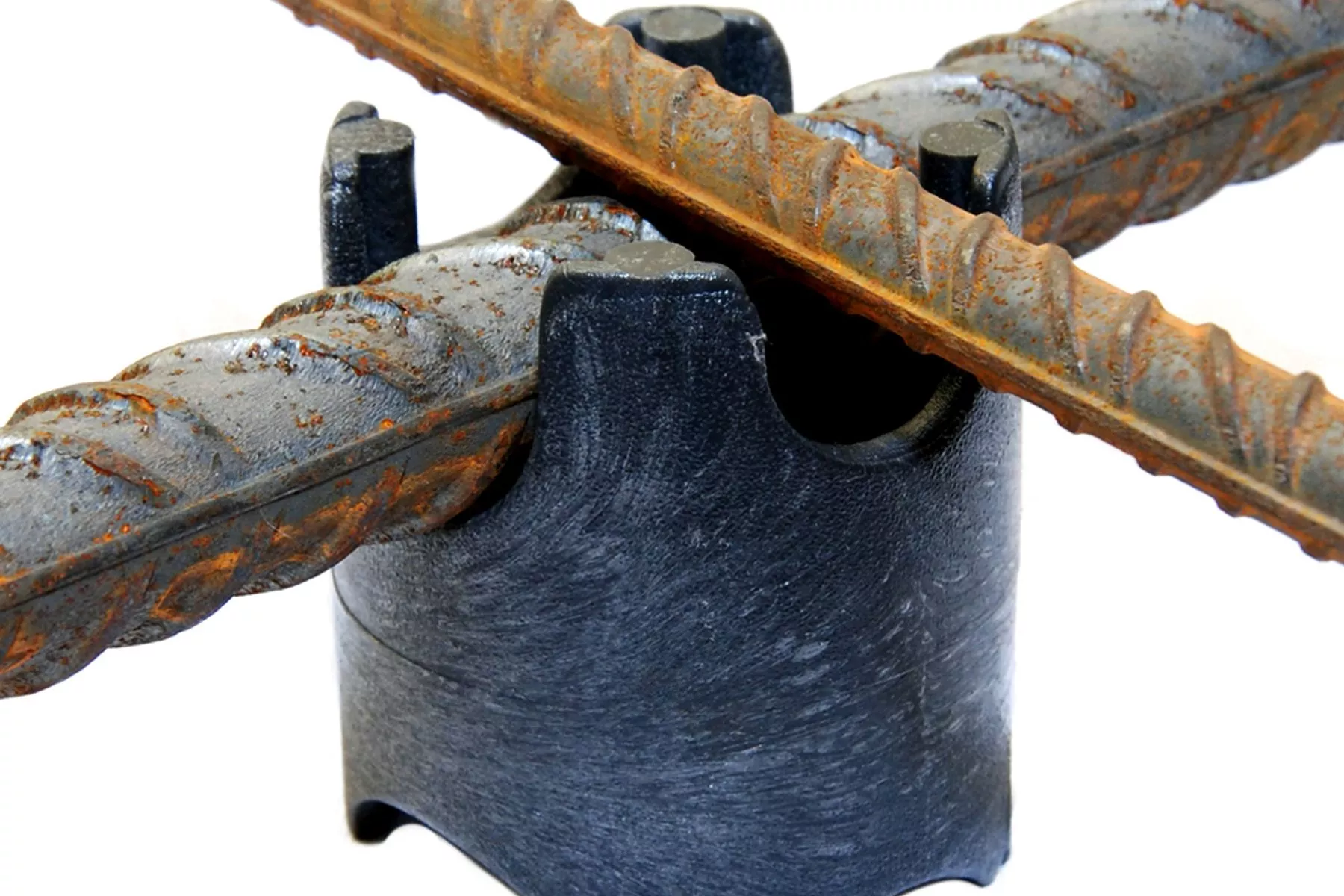 Закладные детали для защитного бетонного слоя производят из прочного пластика. Этот материал устойчив к перепадам температур и другим внешним воздействиям, не подвержен коррозии. Использование пластика вместо металла позволяет снизить себестоимость изделий и уменьшить их продажную цену.Фиксаторы Стойка используются для образования слоя бетона в 15-40 мм толщиной. Они совместимы с арматурой диаметром от 4 до 32 мм. Стойки можно фиксировать в разных положениях.
