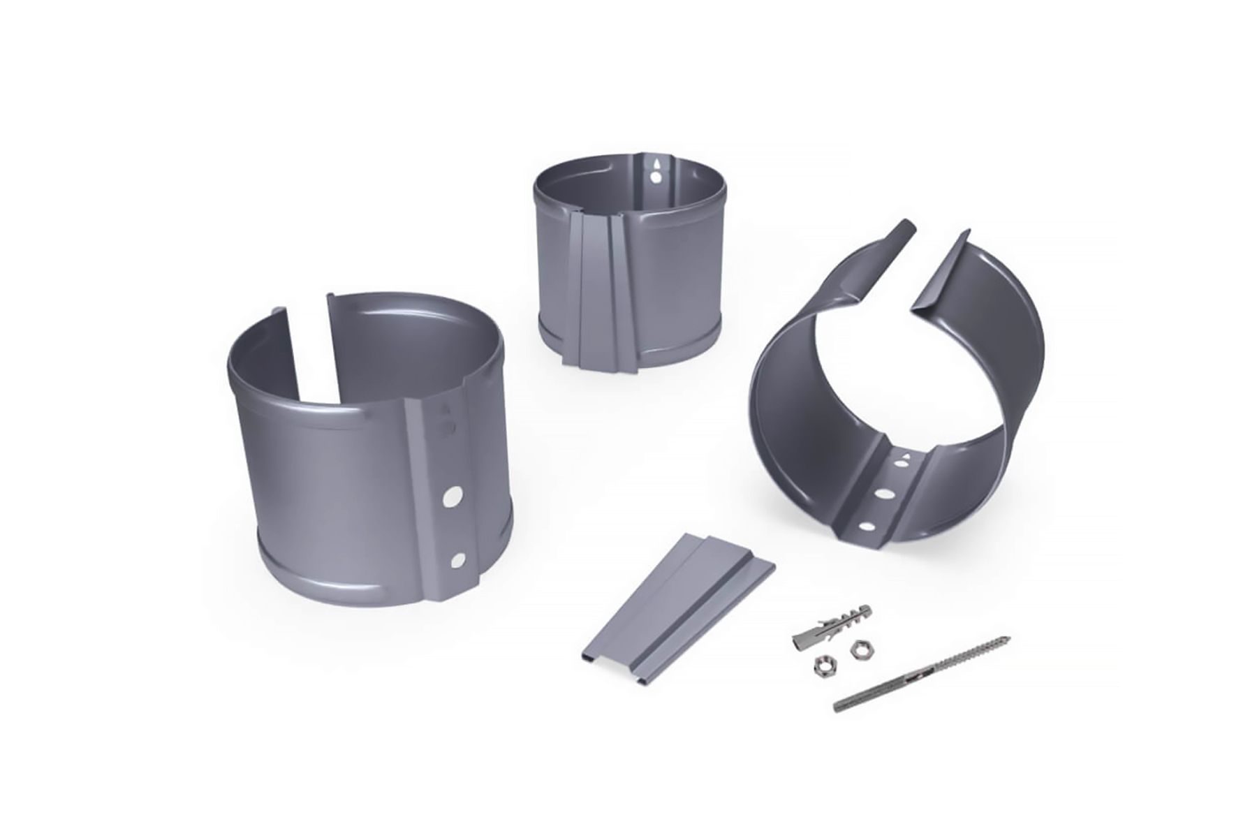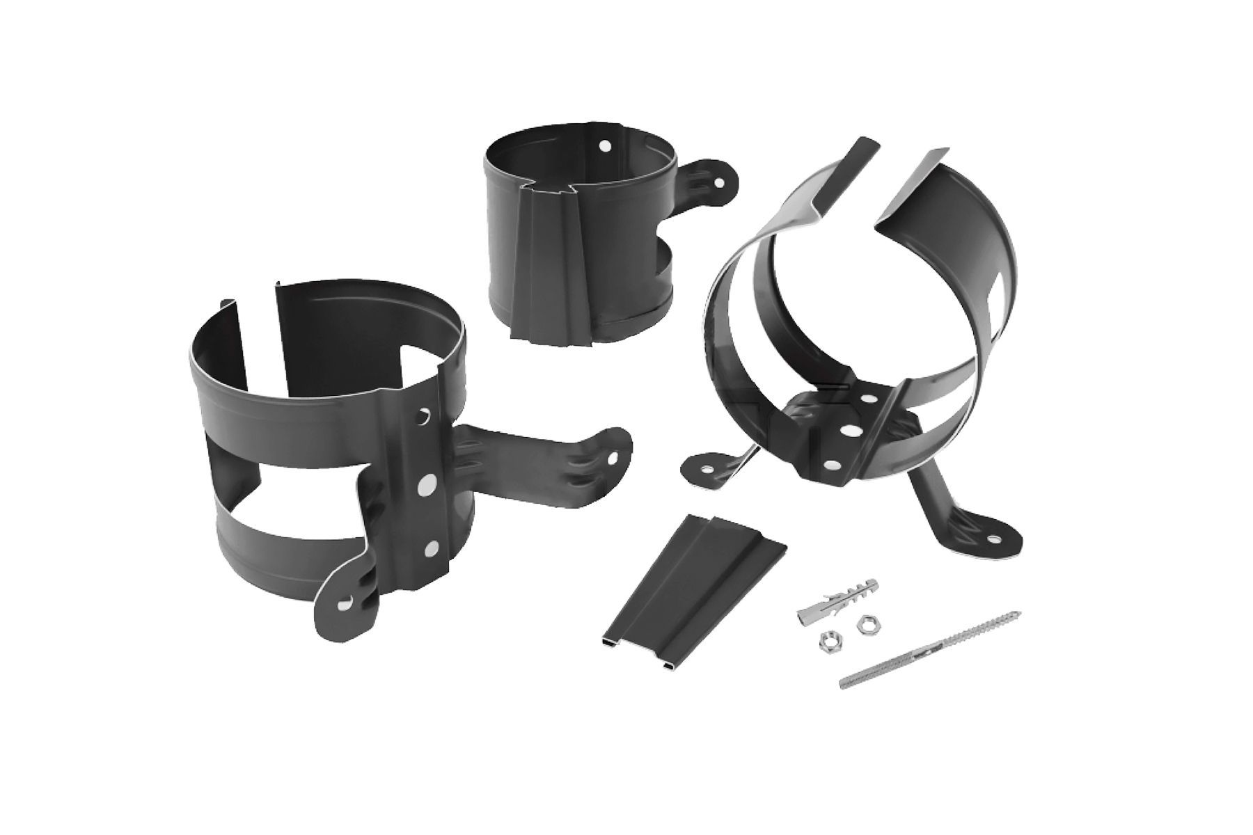 Держатели — это металлические изделия в виде кольца, к которым прилагаются элементы крепления к фасаду. Делают их из пластика или металла. Особой прочностью отличаются кронштейны из стали. Они выдерживают существенные нагрузки без деформации и повреждений.