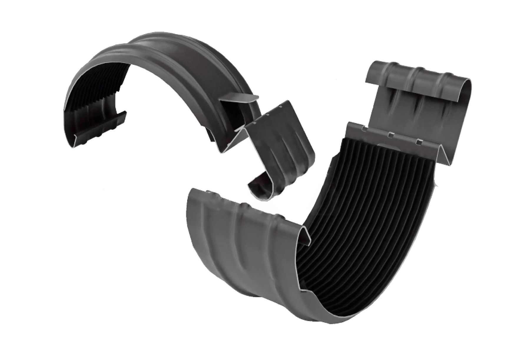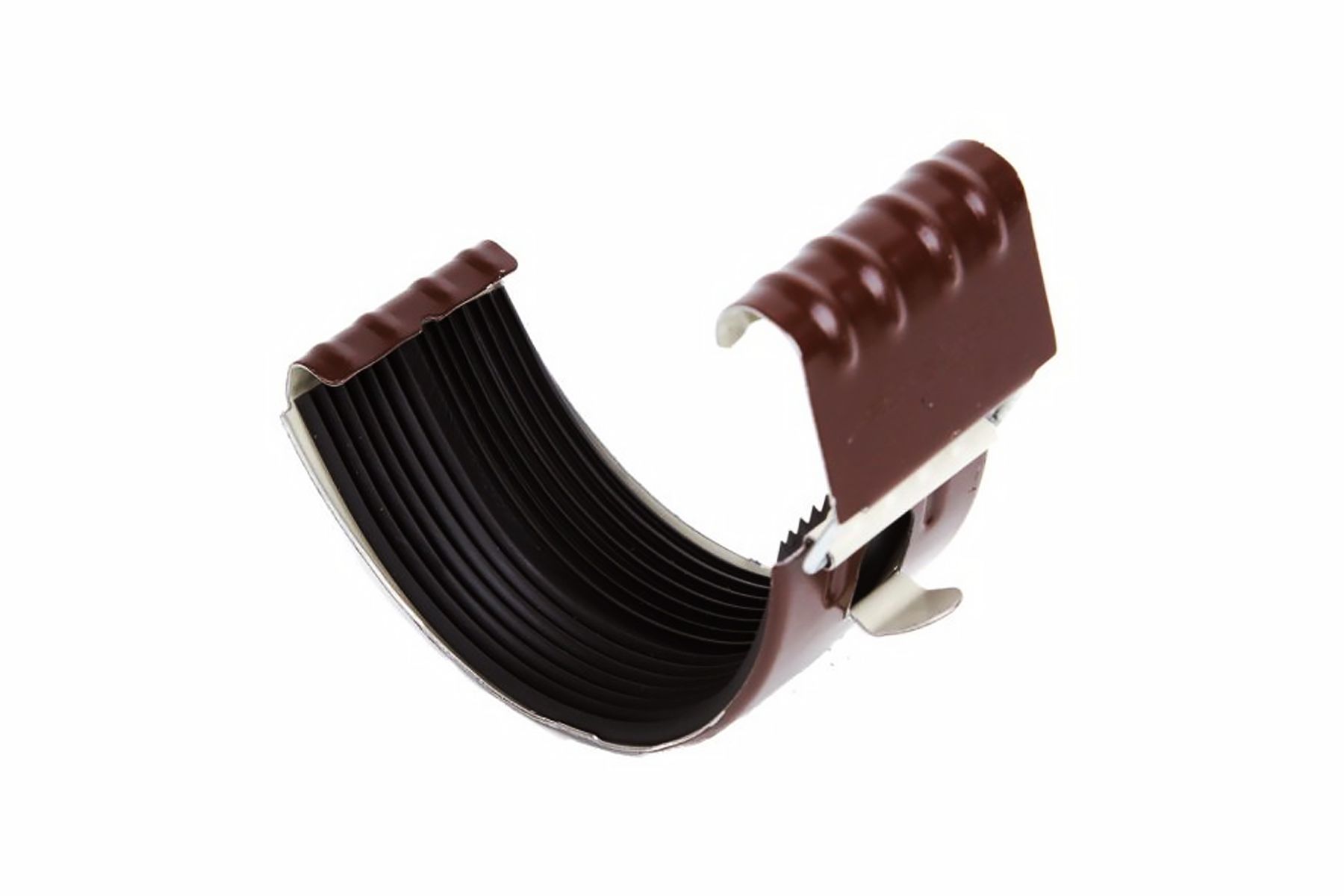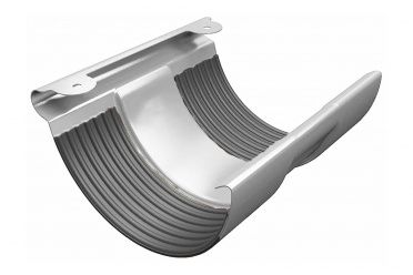 Особенность металлических муфт — конфигурация с загнутыми зацепами для выполнения жесткого соединения. Подвижный зацеп со скругленной кромкой крепится со стороны ровного края детали. Он обеспечивает простой и быстрый монтаж с надежной фиксацией, удобную замену и корректировку положения всех элементов водостока.