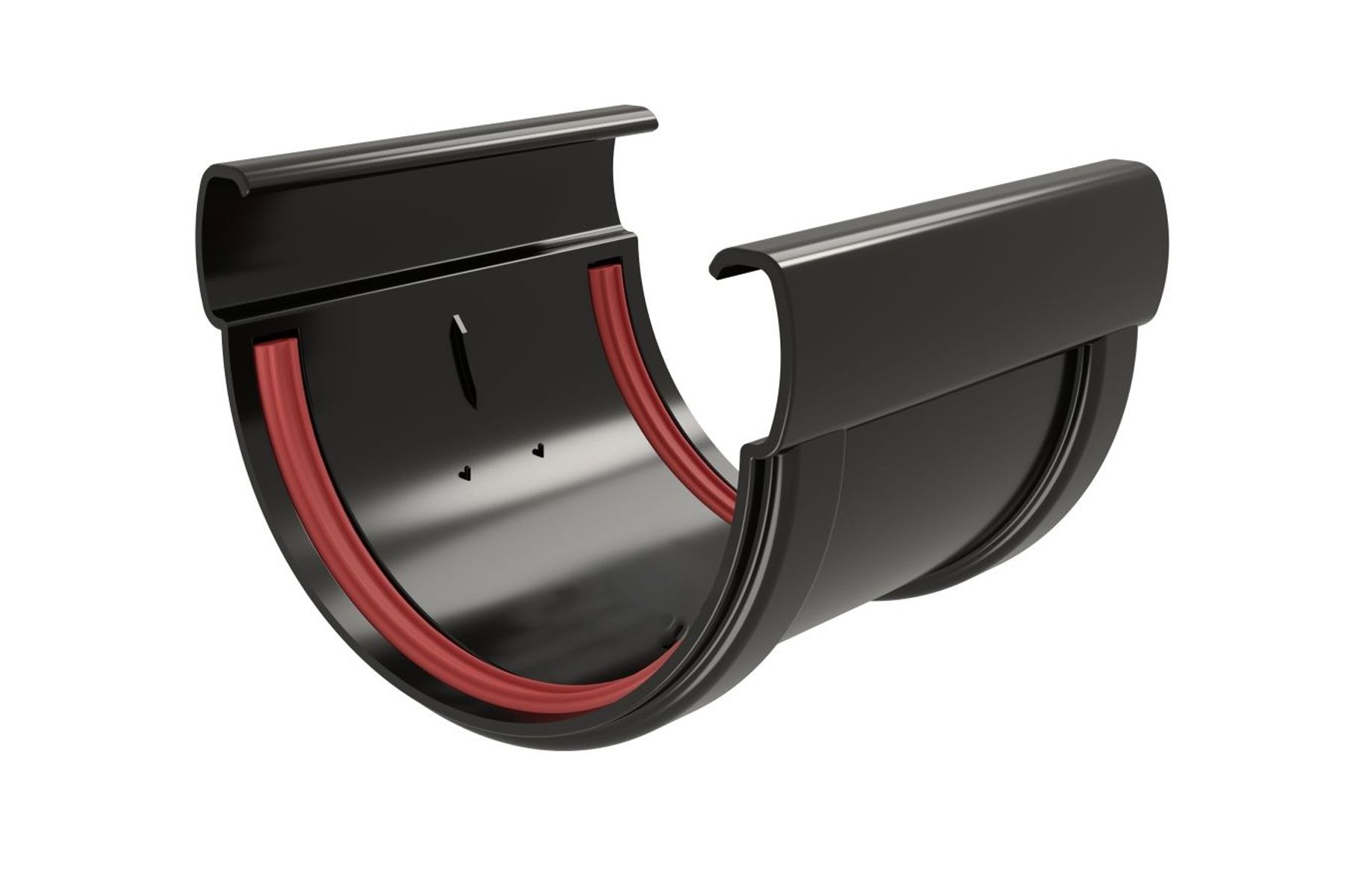Соединители желобов (муфты) — элементы водоотводной системы, предназначенные для стыковки участков водостока в горизонтали. Соединители обеспечивают целостность и герметичность