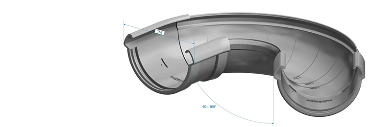 - обеспечение возможности монтажа водостока на объектах, где есть наружные и внутренние углы.