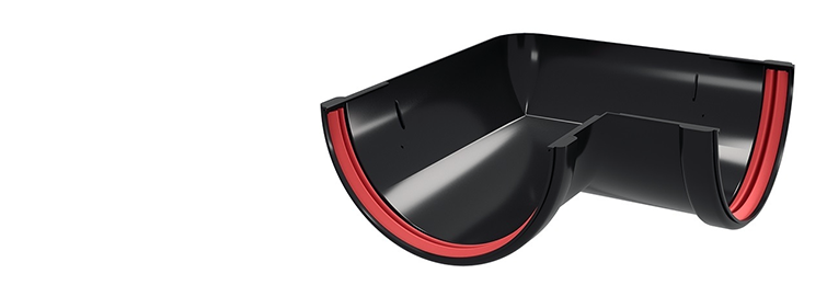 водосточной системы, благодаря которым удается изменить направление стекающих с крыши осадков. Они подходят для размещения на наружных и внутренних углах, поскольку имеют особую конструкцию. Изделия обладают высокой устойчивостью к температурным перепадам и коррозии. Рекомендуемый срок эксплуатации универсальных углов желоба составляет 25-30 лет. Используя такие угловые элементы, можно сохранить внешнюю привлекательность здания при установке системы водостока. При их монтаже не страдает отделка фасада.