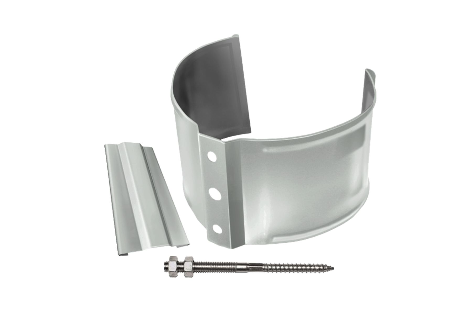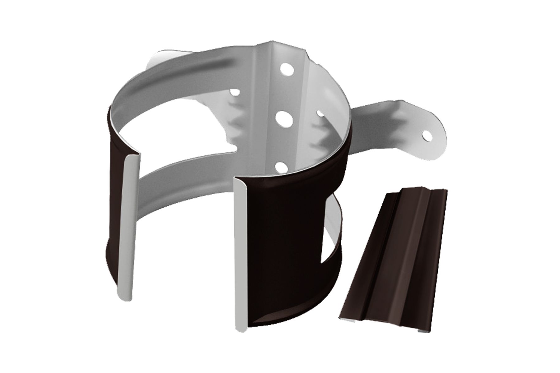 Хомуты — обязательный элемент водосточной системы. Они необходимы для фиксации элементов водостока в нужном положении. Это позволяет обеспечить сохранность и полноценную работу всей системы отвода осадков с крыши.