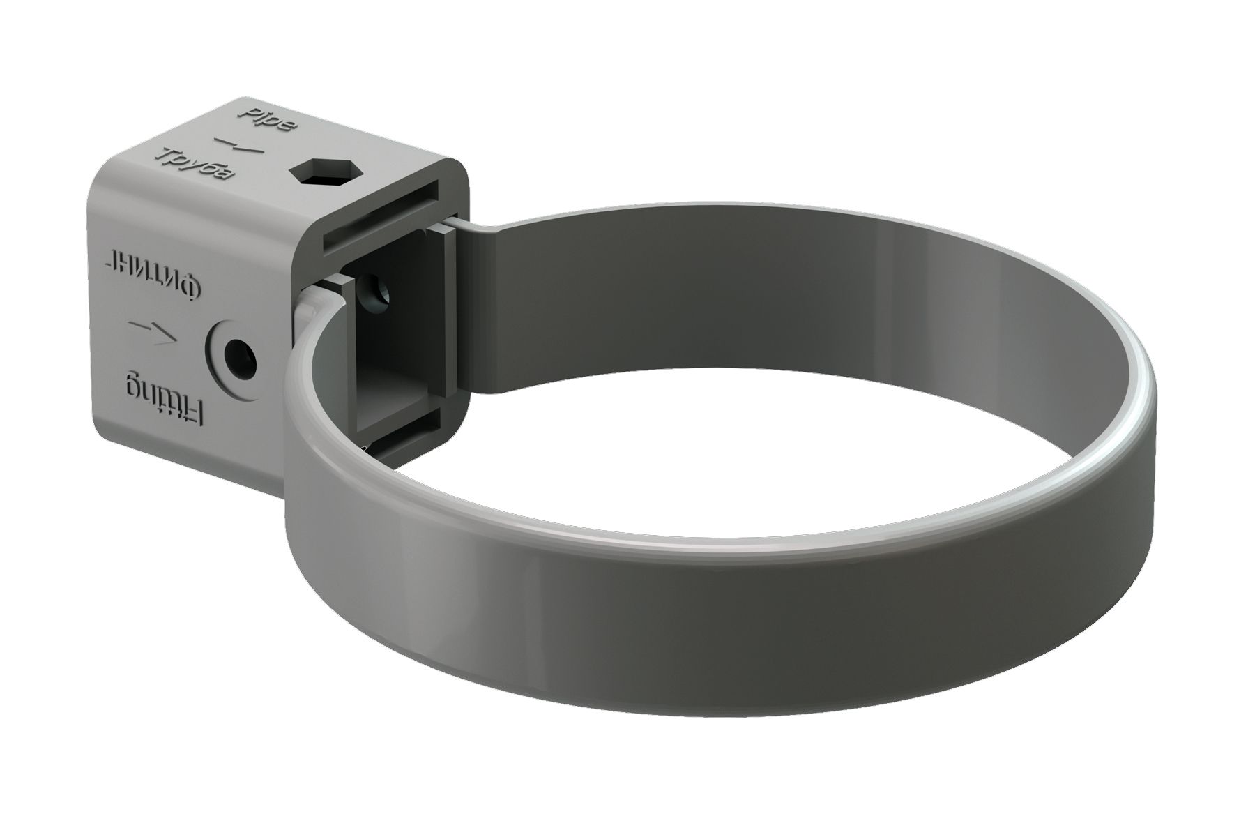 Пластиковый фитинг производится способом литья под большим давлением. Необходимую форму масса принимает после охлаждения в пресс-формах. Пластиковый крепеж устойчив к коррозии. Основным его назначением считается крепление комплектующих водостока из полимеров, характеризирующихся малым весом. Для фиксации тяжелых конструкций их обычно не применяют. Это объясняется тем, что они отличаются меньшей прочностью по сравнению с металлическими хомутами.