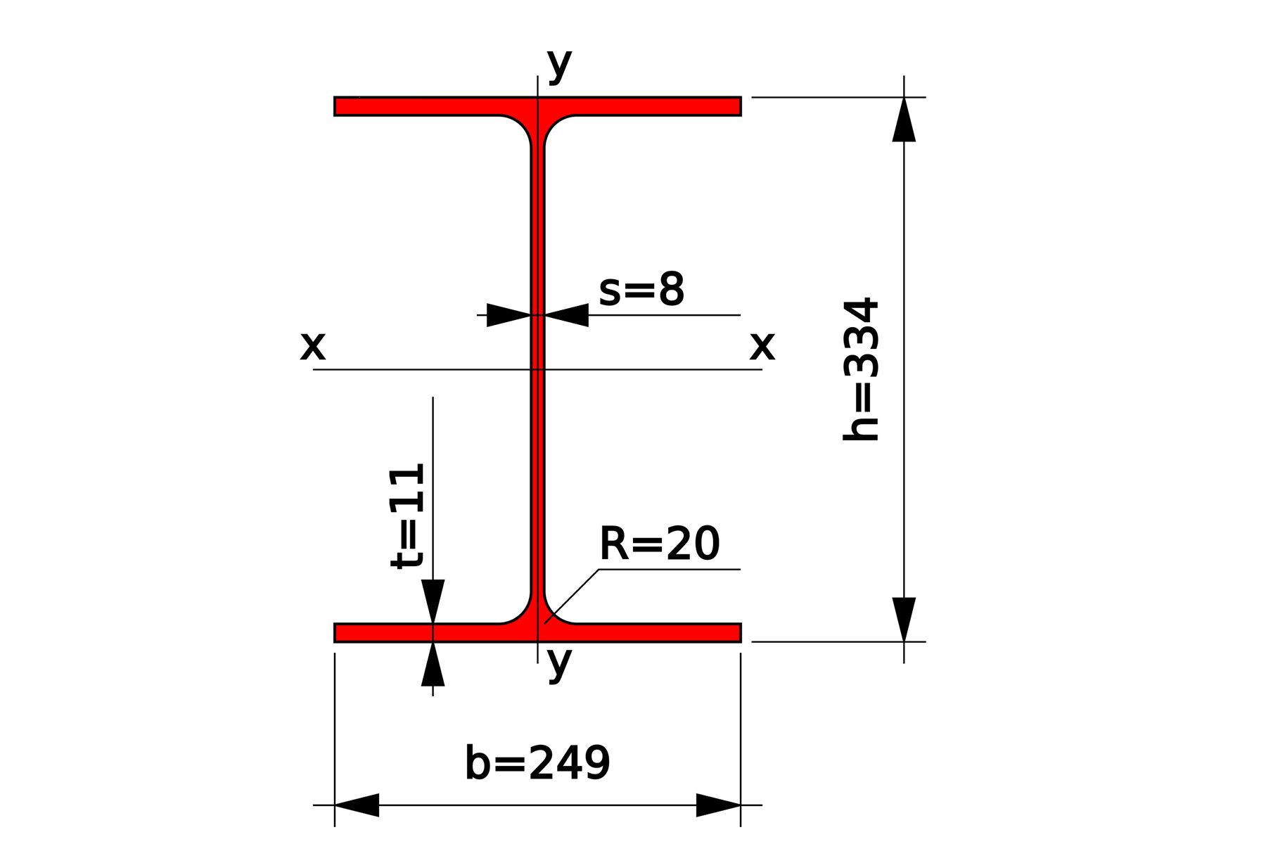 - Высота профиля (h) – 334 мм