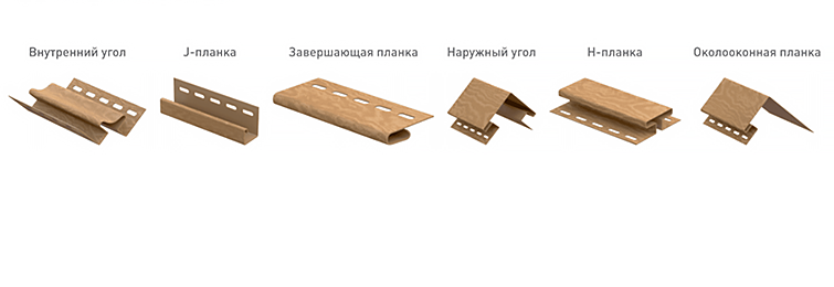 - J-фаски. Элементы в виде буквы “J” для перекрытия углов и торцов сайдинга;