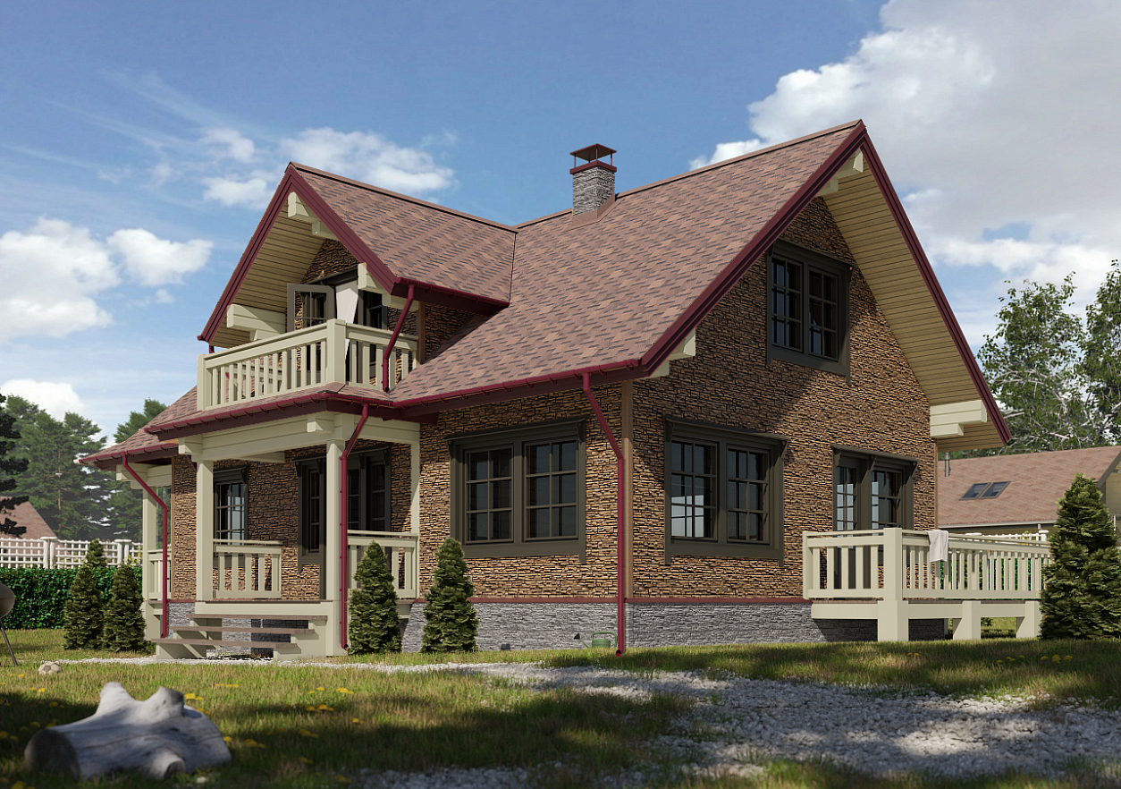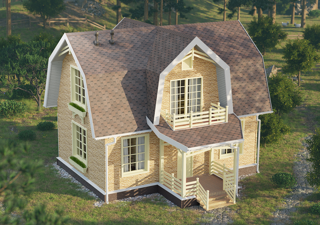 Дом будет выгодно выделяться на фоне других строений. Такой эффект достигается за счет применения новой технологии окраски. На панель наносится краска нескольких тонов со «сдвигом». Это придает рисунку естественность, дополнительную объемность, подчеркивает рельефность сайдинга.