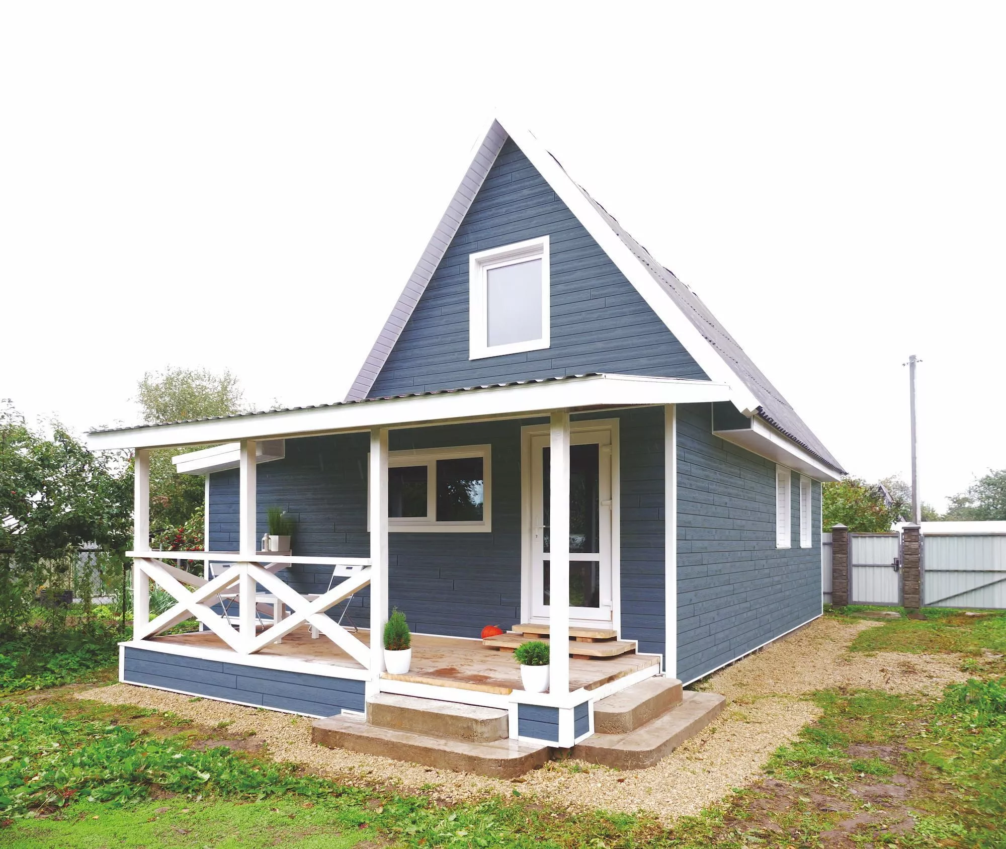 Цвет отлично подходит практически любому строению и не привлекает к себе слишком много внимания, а в сочетании с белыми оконными проемами и наружными углами выглядит по-настоящему благородным и утонченным.