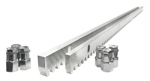 От материала будет зависеть прочность, стойкость к износу, долговечность и способность детали выдерживать нагрузки. Для изготовления реек откатных механизмов применяют:Полимеры (полиамид, нейлон). Преимущества — быстрый монтаж и замена (без сварки), отсутствие коррозии. Изделия из полимеров со стальным сердечником выдерживают значительную нагрузку (до 800 кг). Недостатки — быстрый износ от трения в зоне контакта с шестерней, ограниченный диапазон эксплуатационных температур (от -20 до +50 °C).