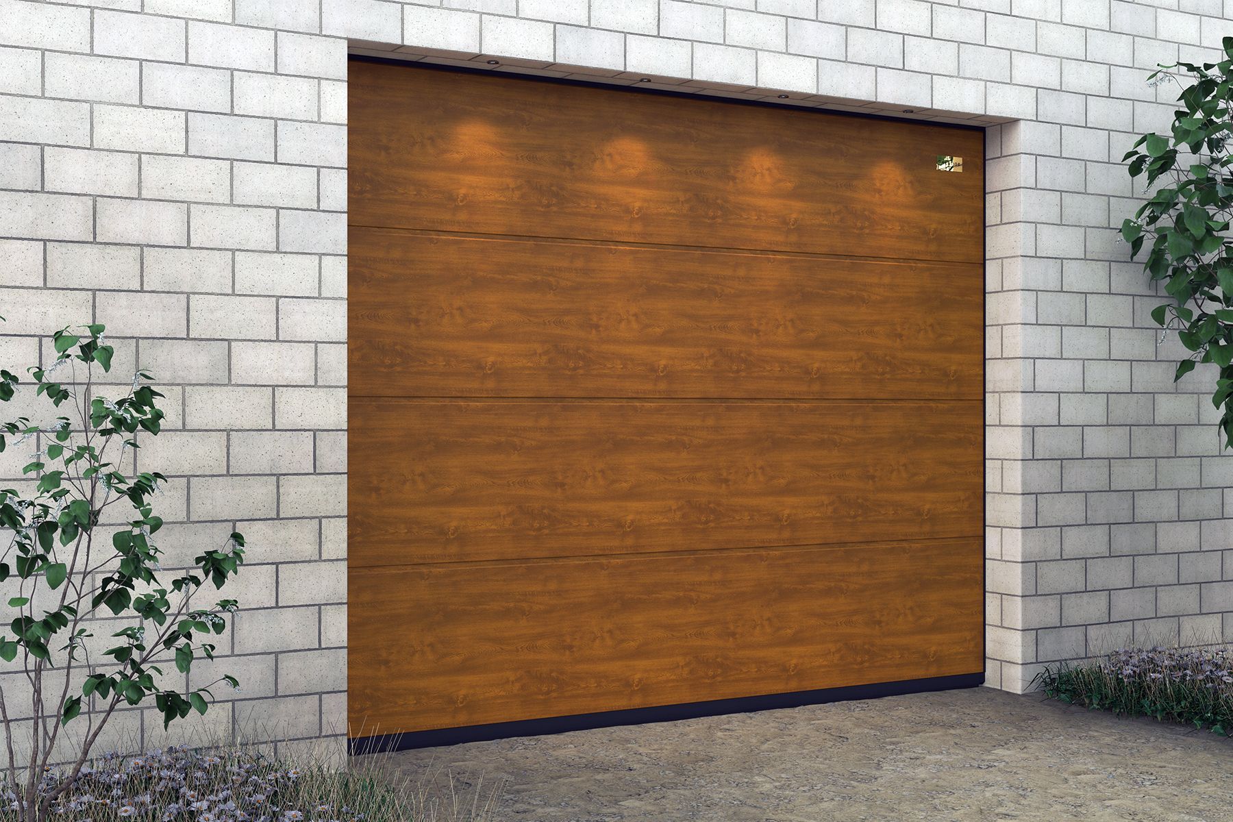 Откатные гаражные ворота состоят из единого полотна на металлокаркасе, обшитого листовым или плитным финишным материалом. Монтаж возможен тремя способами: