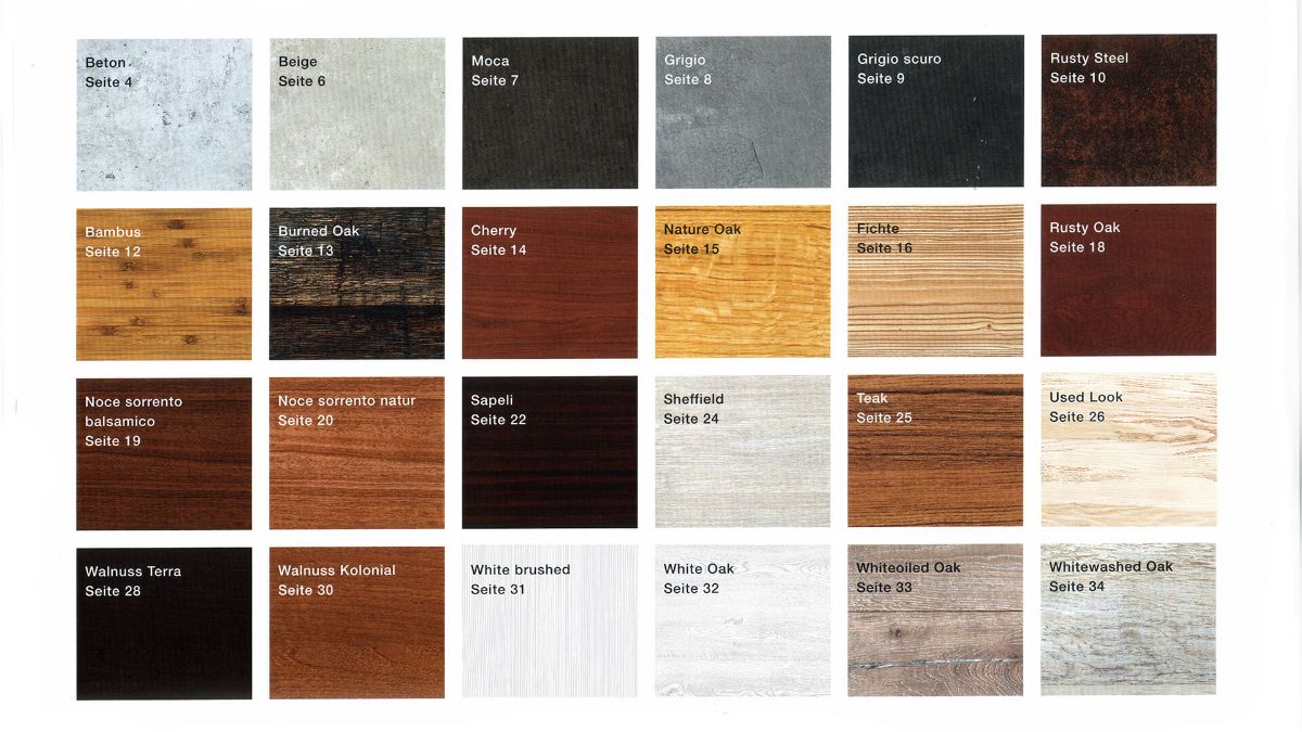 6 вариантов исполнения поверхности Decograin