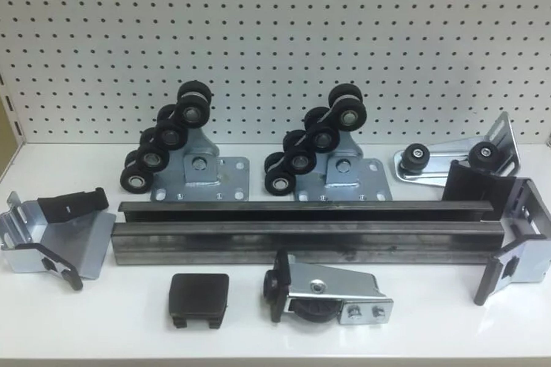 Для обустройства откатной створки, открываемой-закрываемой вручную, пользователю достаточно приобрести готовый комплект от компании "ALUTECH", включающий следующие детали: