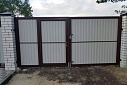 Навес 20х140 см для ворот необходим в первую очередь для того, чтобы защитить их фурнитуру и входную группу от солнца, снега и дождя. За счет этого он продлевает эксплуатационный срок и в плохую погоду позволяет пользоваться воротами в более комфортной обстановке. Зачастую каркас выполнен из металлического профиля, а кровля — например, из профнастила.